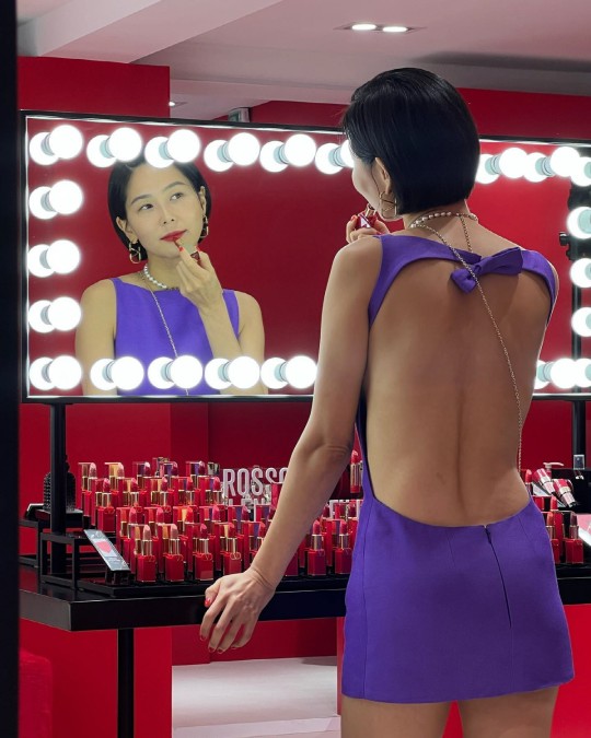 김나영은 15일 자신의 SNS를 통해 여러 장의 사진을 게재했다. 공개된 사진 속에는 서울 한남동명품 브랜드 뷰티 팝업스토어를 찾은 김나영의 모습이 담겼다. 보라색 미니 원피스를 입은 김나영은 다양한 제품들을 체험해보며 즐기는 모습. 앞모습은 무난한 미니 원피스였지만 뒷모습은 파격 그 자체였다. 김나영은 등이 훤히 보이는 패션으로 과감하게 뒤태를 노출했다. 연예계 대표 패셔니스타 김나영은 점점 더 과감해지는 패션도 자신만의 스타일로 완벽하게 소화해냈다.