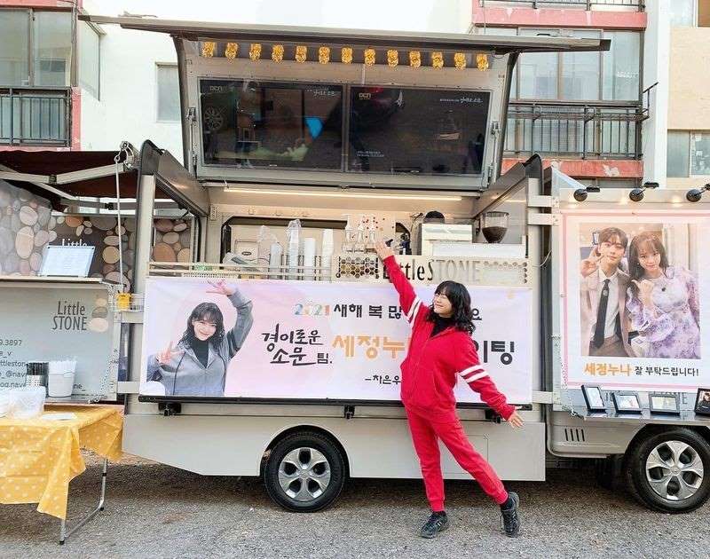 커피차에는 ‘2021 새해 복 많이 받으세요. 경이로운 소문 팀, 세정 누나 파이팅. 세정 누나 잘 부탁드립니다. -차은우’, ‘세정 누나 잘 부탁드립니다’라는 문구가 적혀 있다. 두 사람은 다수의 프로그램에 함께 출연하며 우정을 이어오고 있다.