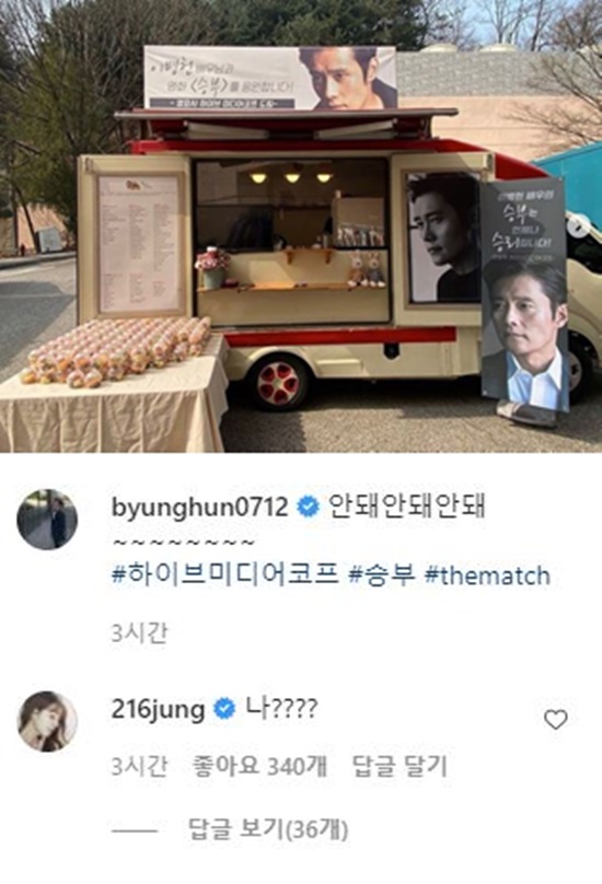 이병헌은 다시 한 번 커피차 인증을 하면서도 아내 이민정의 댓글을 '사전 차단'하며 유쾌한 티키타카를 입증했다.