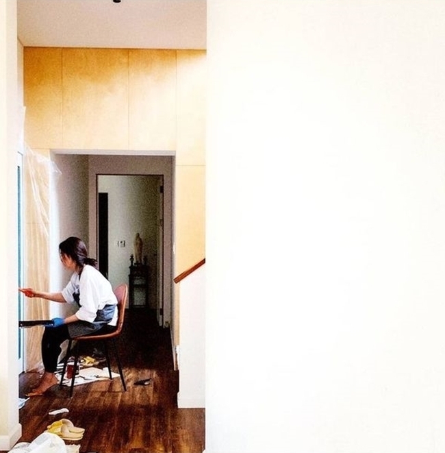 배우 송윤아가 셀프 페인팅 후유증을 알렸다.